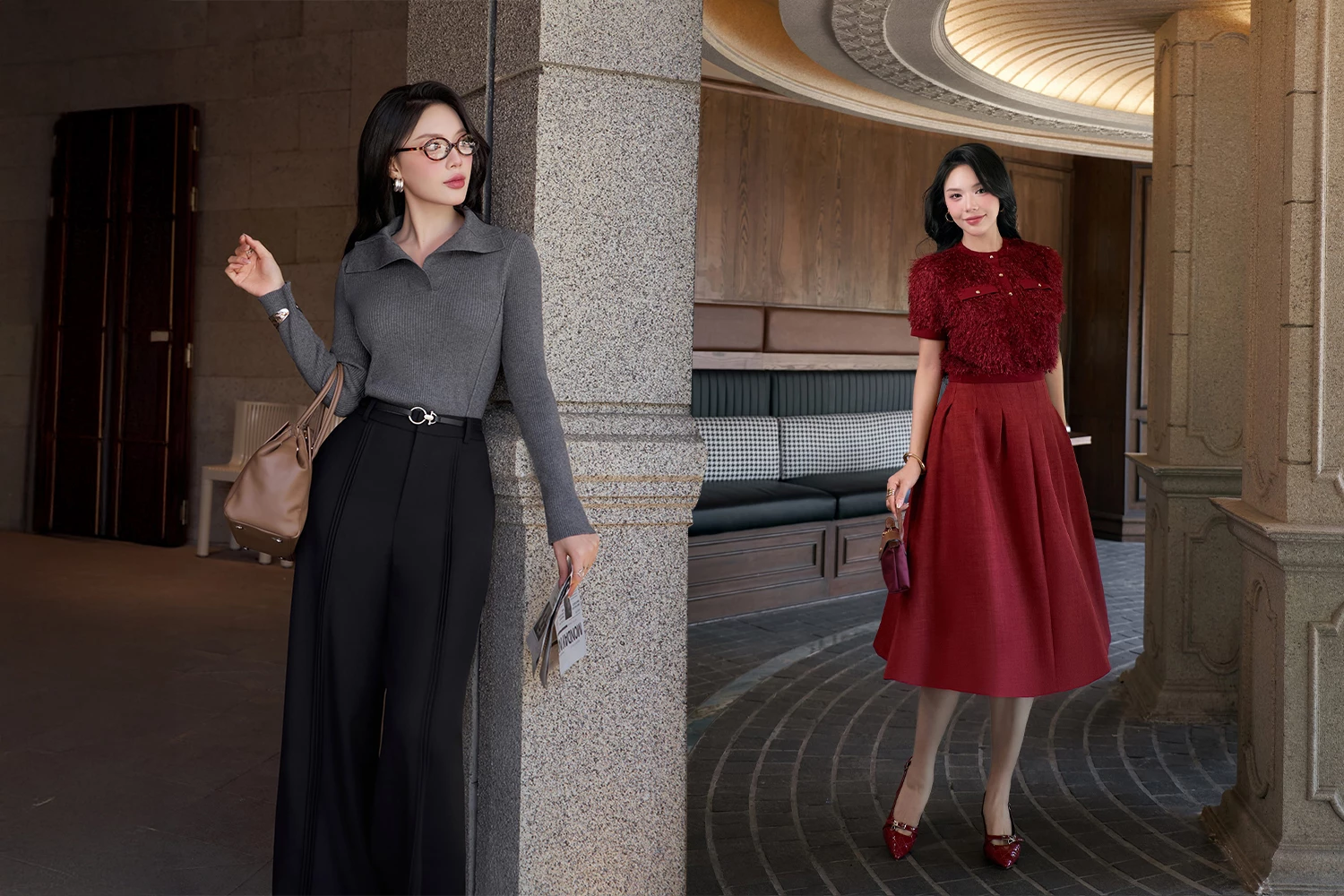 Khi sắc đỏ không chỉ rực rỡ mà còn trở nên sâu lắng và tinh tế, BST Deep in Rouge của IVY moda được dệt nên từ những xúc cảm sâu sắc, mang theo vẻ đẹp sang trọng và tinh thần thời đại. Lấy sắc đỏ đô trầm làm điểm nhấn chủ đạo, Deep in Rouge gợi lên sự quyến rũ tinh tế, bản lĩnh và đầy nội lực của người phụ nữ hiện đại. Khi đặt cạnh tông ghi thanh lịch, bảng màu trở nên cân bằng hơn bao giờ hết – vừa nổi bật, vừa tinh tế, tỏa sáng mà không phô trương.