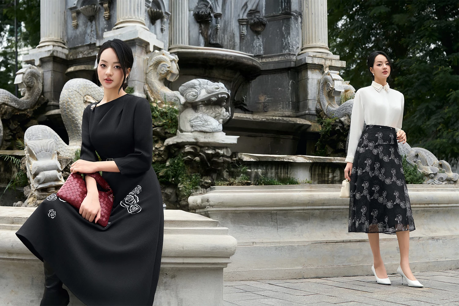 Các thiết kế trong Rose Noir được thiết kế đầy ấn tượng qua họa tiết hoa hồng cách điệu – biểu trưng cho vẻ đẹp tinh tế, kiêu hãnh và cuốn hút. Dưới bàn tay tinh tế của IVY moda, hình ảnh đóa hồng xuất hiện qua nhiều kỹ thuật tạo hình khác nhau: từ ren mềm mại đến tweed cao cấp, tạo nên những bề mặt chất liệu phong phú và đầy cảm xúc. Mỗi sản phẩm đều được trau chuốt từ phom dáng, đường cắt đến từng chi tiết nhấn nhá, nhằm tôn lên nét đẹp tự tin và khí chất thanh lịch của người phụ nữ.